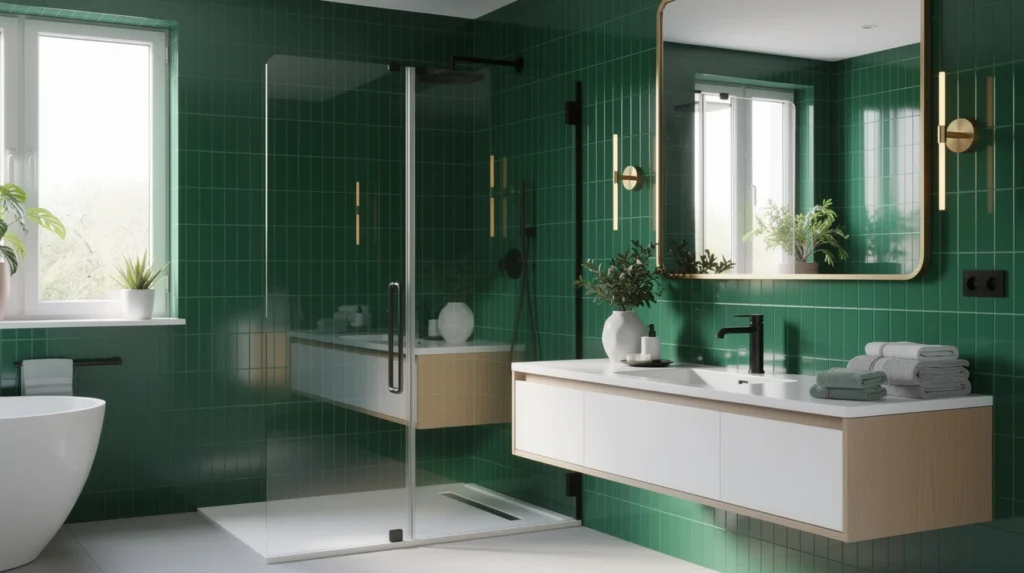 Matériaux et finitions adaptés à une salle de bain vert émeraude